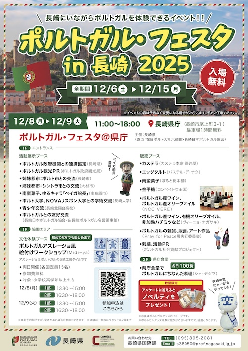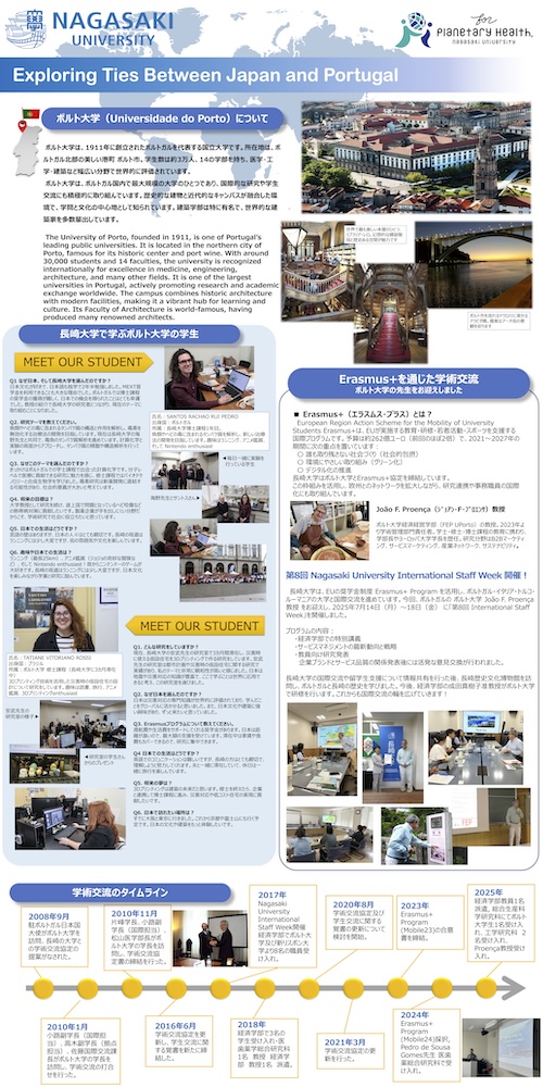 「ポルトガル・フェスタin 長崎 2025」 の長崎大学ブースにて、「ポルト大学、NOVAリスボン大学との学術交流」が紹介されました。 その紹介のポスター展示にて、 ポルトガルからの留学生 Santos Rachao Rui Pedro さん(生体分子化学研究室所属、博士後期課程1年)の研究が紹介されました。 本イベントは、夕方のニュースでも紹介されました。